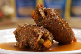 Selar os bifes enrolados em uma panela com óleo bem quente até dourar. Reservar.